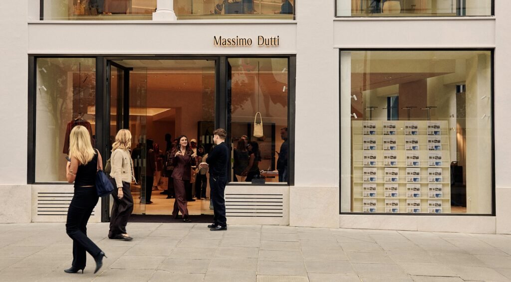 Exterior de una tienda de Massimo Dutti recientemente reformada en Oxford Street, Londres.
