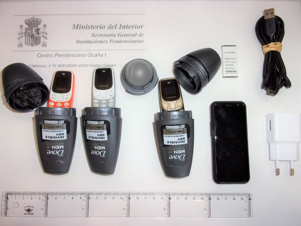 La mayoría de los teléfonos móviles que se intervienen son de pequeño tamaño: miden poco más de seis centímetros y son fáciles de ocultar en un zapato o en las cavidades del cuerpo. Se ofertan en páginas web por poco más de 20 euros. Pero también los hay, cada vez en mayor número, con acceso a internet, los conocidos como smartphones, mucho más cotizados entre los reclusos. Buena parte de ellos son introducidos en las prisiones por familiares durante las visitas vis a vis (íntimas) o por reclusos que vuelven de un permiso y que los llevan escondidos en los objetos que portan —se ha llegado a encontrar uno en un tubo de pasta de dientes— o en sus orificios corporales. Ahora también se encuentran en los patios de la prisión supuestamente dejados caer desde drones, un sistema en alza tanto para colar estos dispositivos como pequeñas cantidades de droga y que, según Acaip, “dificulta las labores de prevención y facilita la entrada de dispositivos más sofisticados”.